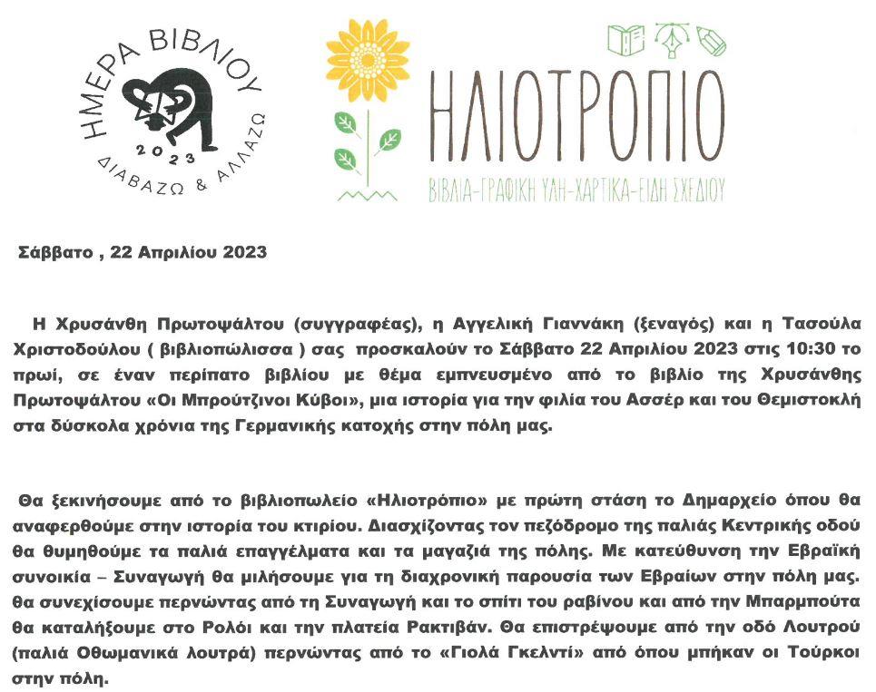 Βέροια Εκδηλώσεις Περίπατος βιβλίου με αφετηρία το Βιβλιοπωλείο Ηλιοτρόπιο / Σάββατο 22 Απριλίου Faretra.info 18/04/2023, 20:06 Share on Facebook Share on Twitter Send with mail Φαρέτρα Βιβλίο βιβλιοπωλείο Ηλιοτρόπιο ΣΧΕΤΙΚΑ ΑΡΘΡΑ Δεν υπάρχουν σχετικά άρθρα.