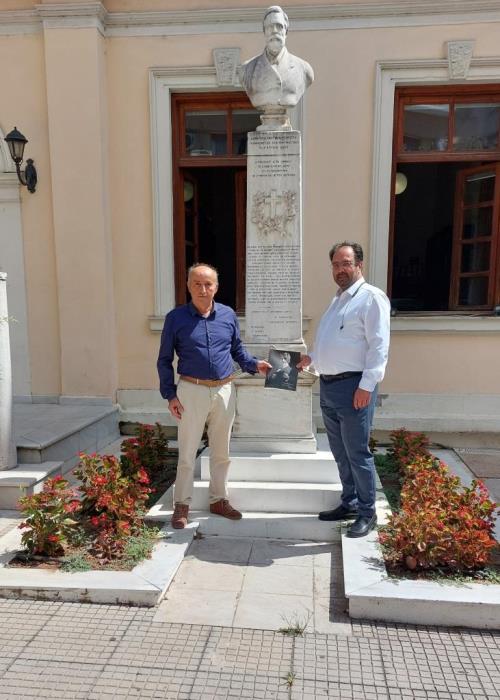 Με μία συμβολική φωτογραφία μπροστά στην προτομή του Ευεργέτη των Σχολών της Βέροιας, Δημήτριου Ρακτιβάν, την οποία φιλοτέχνησε ο Γεώργιος Μπονάνος, ένας από τους σημαντικότερους νεοέλληνες γλύπτες, ο Δήμαρχος Βέροιας, Κωνσταντίνος Βοργιαζίδης δέχθηκε τη δωρεά του βιβλίου “ΓΕΩΡΓΙΟΣ ΜΠΟΝΑΝΟΣ ΚΕΦΑΛΛΗΝ ΕΠΟΙΕΙ” από τον σύζυγο της εγγονής του αείμνηστου καλλιτέχνη, υποψήφιο δημοτικό σύμβουλο, Βασίλη Κωνσταντινόπουλο.