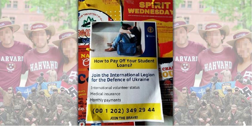 Συγκεκριμένα, πρόκειται για μια αγγελία -προφανώς αναρτημένη σε αμερικανικό πανεπιστήμιο- που καλεί, τους έχοντες ανάγκη, φοιτητές να ενταχθούν στη «Διεθνή Λεγεώνα για την Υπεράσπιση της Ουκρανίας» προκειμένου να «εξοφλήσουν τα φοιτητικά τους δάνεια»! Οι καλούντες προσφέρουν στους «γενναίους λεγεωνάριους» «καθεστώς διεθνούς εθελοντή, ιατρική ασφάλιση, μηνιαίο μισθό». Επίσης, ένας τηλεφωνικός αριθμός επικοινωνίας, που υπάρχει στην αγγελία, ανήκει στην Πρεσβεία της Ουκρανίας στην Ουάσιγκτον, των ΗΠΑ.