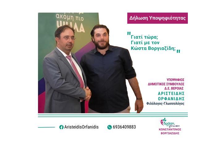 Βέροια: Η υποψηφιότητα του Άρη Ορφανίδη με τη «Δράση και Γνώση» του Κώστα Βοργιαζίδη