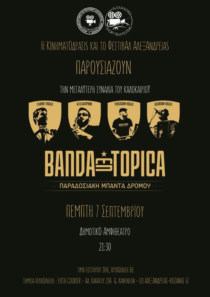 Η ΚΙΝΗΜΑΤΟΔΡΑΣΙΣ και το Διεθνές Φεστιβάλ Ταινιών Μικρού Μήκους Αλεξάνδρειας σας προσκαλούν σε ένα εναλλακτικό πανηγύρι με παραδοσιακά τραγούδια αλλά και πρωτότυπες συνθέσεις.