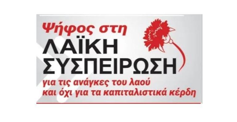 Στις επερχόμενες, λοιπόν, εκλογές, καλούμε το λαό να στηρίξει σε Δήμους και Περιφέρειες τα ψηφοδέλτια μάχης της “Λαϊκής Συσπείρωσης”, τα ψηφοδέλτια που στηρίζει το ΚΚΕ και αποτελούν το μόνο αντίπαλο δέος στις αντιλαϊκές πολιτικές που πρόθυμα υλοποιούν οι εκλεκτοί των αστικών κομμάτων.”