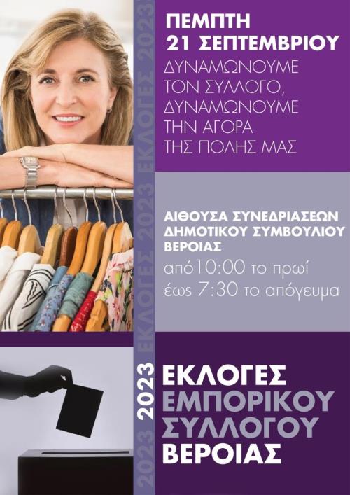 Ενιαίο ψηφοδέλτιο υπέβαλε αίτηση για τις Εκλογές του Εμπορικού Συλλόγου Βέροιας που θα πραγματοποιηθούν την Πέμπτη 21Σεπτεμβρίου 2023 στην αίθουσα συνεδριάσεων του Δημοτικού Συμβούλιου , στην οδό Μητροπόλεως 46, από τις 10:00 το πρωί έως τις 19:30 το απόγευμα.
