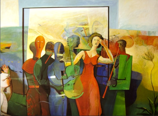 Αλλά και η σχέση που είχε παλιά η Ζωγραφική και η Γλυπτική με την Αρχιτεκτονική εκφράζεται στην Τέχνη του Φόρτσα με τον καλύτερο τρόπο στην κοσμηματογράφηση που έκανε για το εμβληματικό Θέατρο της Σύρου “Απόλλων”, δουλειά πραγματικά εντυπωσιακή.