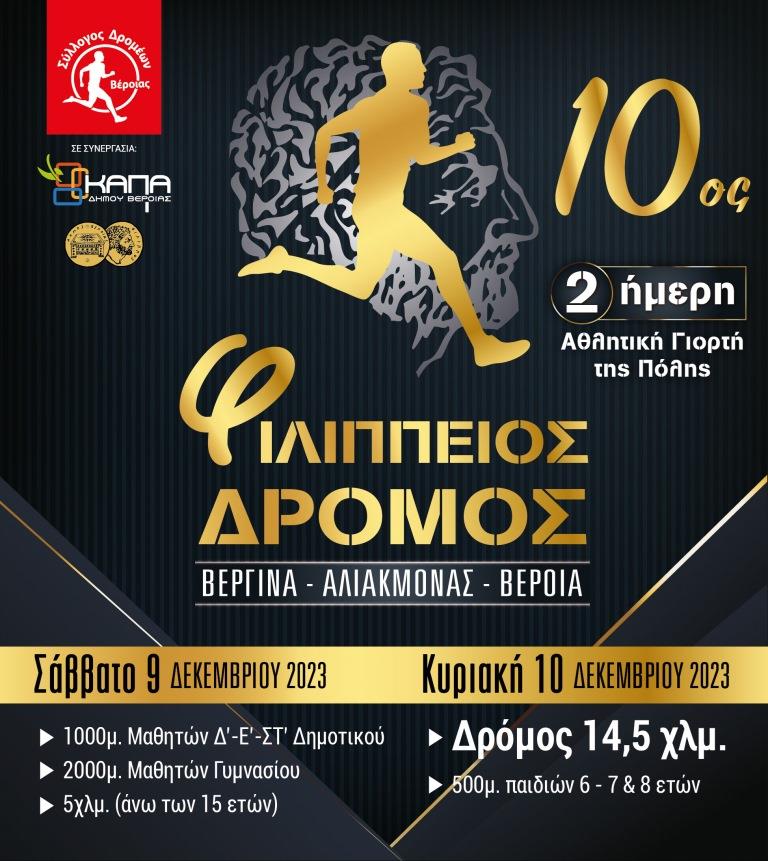 Άνοιξαν οι εγγραφές / 1Οος Φιλίππειος δρόμος 14,5χλμ & 5χλμ – Βέροια / Σάββατο 9 & Κυριακή 10 Δεκεμβρίου