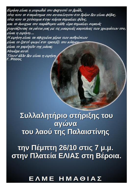 Βέροια Ειδήσεις με Διάρκεια Εκδηλώσεις Τοπικά ΕΛΜΕ Ημαθίας: Συλλαλητήριο στήριξης του αγώνα του λαού της Παλαιστίνης / Βέροια, Πέμπτη 26 Οκτωβρίου Faretra.info 25/10/2023, 22:15 Share on Facebook Share on Twitter Send with mail Φαρέτρα ΕΛΜΕ Ημαθίας λαός Παλαιστίνης Παλαιστίνη Συλλαλητήριο ΣΧΕΤΙΚΑ ΑΡΘΡΑ Δεν υπάρχουν σχετικά άρθρα.