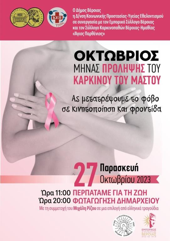 Φορείς της Βέροιας: Οκτώβριος Μήνας Πρόληψις Καρκίνου του Μαστού / εκδήλωση, Παρασκευή 27 Οκτωβρίου