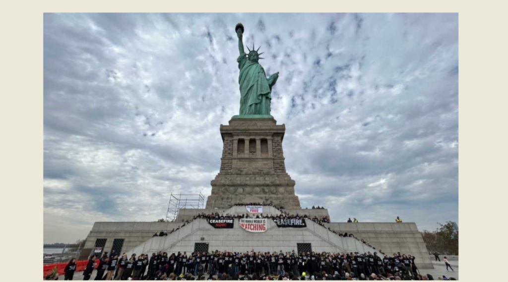 Νέα Υόρκη – Άγαλμα της Ελευθερίας – κατάληψη / Εβραίοι διαδηλωτές ζητούν ειρήνη στη Μέση Ανατολή