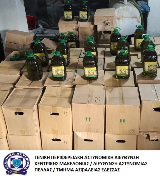 Από το Τμήμα Ασφάλειας Έδεσσας κατασχέθηκαν 699 δοχεία που περιείχαν συνολικά 3.495 λίτρα λαδιού