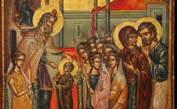 Στις 21 Νοεμβρίου γιορτάζουμε τα Εισόδια της Θεοτόκου. Πατέρας της Παναγιάς μας ήταν ο Ιωακείμ και μητέρα της η Άννα. Μέχρι τα βαθιά τους γεράματα δεν είχαν αποκτήσει παιδί. Υποσχέθηκαν λοιπόν, στο Θεό, πως αν τους χαρίσει ένα παιδάκι, μόλις γίνει τριών ετών θα το αφιερώσουν στο ναό Του.