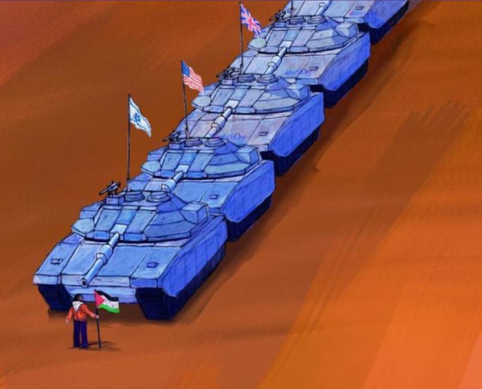 Για λίγες ημέρες σταματά το αιματοκύλισμα των αμάχων, αλλά όχι και η αντίσταση των Παλαιστινίων απέναντι στη Δύση, όπως δείχνει το σκίτσο του Παλαιστίνιου Μοχάμεντ Αρέφα, το οποίο ομοιάζει την Παλαιστίνη με την πράξη αντίστασης ενός ανθρώπου με σακούλες στα χέρια στην πλατεία Τιενανμέν του Πεκίνου, το 1989.