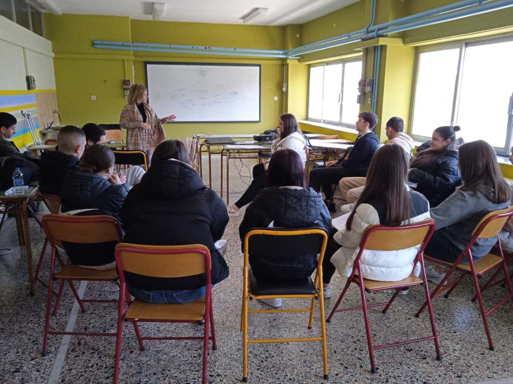 Συγκεκριμένα, στις 12 του μηνός έγινε δίωρη ενημέρωση ενός τμήματος της Β΄ Λυκείου από τον Σύλλογο Κοινωνικής Πρωτοβουλίας Βέροιας «Πρωτοβουλία για το Παιδί» με θέμα «Η απεμπλοκή από το ‘Τρίγωνο του Δράματος’ στις σχέσεις», κατά την οποία οι μαθητές /-τριες συζήτησαν με τις υπεύθυνες του προγράμματος, κ. Νιώπα Θεοδώρα, κοινωνική λειτουργό και κ. Πανταζή Μαρία, ψυχολόγο, τον τρόπο με τον οποίο μπορούν να αποφύγουν δυσχερείς καταστάσεις όπως την ενδοοικογενειακή βία, τον εκφοβισμό και τις εξαρτήσεις αλλά και το πώς μπορούν να συνδράμουν συμμαθητές και φίλους που αντιμετωπίζουν ανάλογες συνθήκες. Στο σεμινάριο αυτό ανέπτυξαν μέσα από διάλογο τους προβληματισμούς τους σχετικά με αυτά τα θέματα και αναζήτησαν με τη βοήθεια των ειδικών, δρόμους Απεμπλοκής από το Δράμα, που όπως αντιλήφθηκαν λαμβάνει χώρα και στην τοπική κοινωνία.