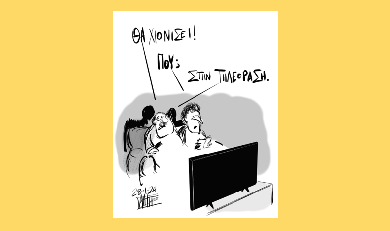 Σκίτσο-σχόλιο του ηθοποιού Γιώργου Γαλίτη για την κακοκαιρία «εξπρές» στα μέσα μαζικής ενημέρωσης.