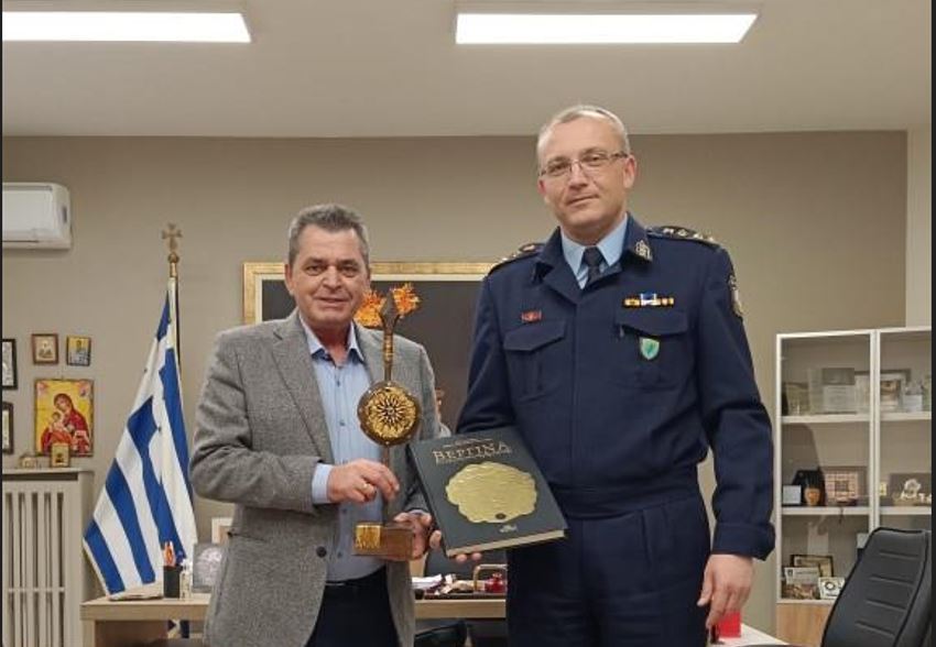 Εθιμοτυπική επίσκεψη στο γραφείο του Αντιπεριφερειάρχη Ημαθίας κ. Κωνσταντίνου Καλαϊτζίδη πραγματοποίησε σήμερα, Τρίτη 20 Φεβρουαρίου, ο νέος Αστυνομικός Διευθυντής Ημαθίας κ Ανδρέας Καλογερόπουλος, κατόπιν ανάληψης των νέων του καθηκόντων.