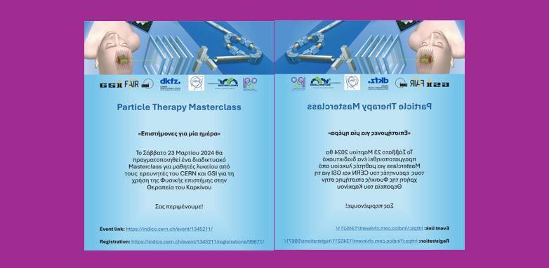 Το νέο αυτό Particle Therapy Masterclass https://indico.cern.ch/event/840212/overview , θα επιτρέψει στους μαθητές να συμμετέχουν με ενθουσιασμό σε καινοτόμες ερευνητικές μεθόδους, πάνω στην τεχνική θεραπείας σοβαρών μορφών καρκινικών όγκων, όπως αυτό γίνεται στο Γερμανικό Κέντρο Έρευνας για τον Καρκίνο DKFZ https://www.dkfz.de/ στη Χαϊδελβέργη.