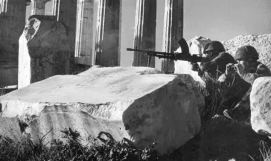 Οι επίσημες εκθέσεις της Αρχαιολογικής Υπηρεσίας τον Δεκέμβρη του ’44 είναι αποκαλυπτικές για την καταστροφική μανία των Βρετανών στρατιωτών στην Ακρόπολη, την ίδια στιγμή που σημάδευαν τον λαό της Αθήνας, τους ΕΑΜιτες και ΕΛΑΣίτες που μάχονταν με λιανοντούφεκα ενάντια στη νέα συμμαχική σκλαβιά