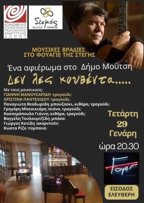 Βέροια Εκδηλώσεις Μουσική Βέροια: Αφιέρωμα στον Δήμο Μούτση / Τετάρτη 29 Γενάρη Faretra.info 28/01/2025, 19:39 Share on Facebook Share on Twitter Send with mail Βέροια: Αφιέρωμα στον Δήμο Μούτση / Στέγη, Τετάρτη 29 Γενάρη – Φαρέτρα Δήμος Μούτσης ΚΕΠΑ ΣΧΕΤΙΚΑ ΑΡΘΡΑ Δεν υπάρχουν σχετικά άρθρα.