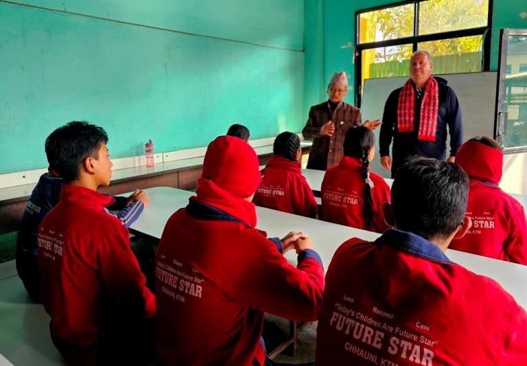 Στο δεύτερο μέρος παρουσιάζεται η επίσκεψη του καλεσμένου μας σε ένα Ιδιωτικό Αγγλόφωνο Δευτεροβάθμιο Σχολείο του Κατμαντού με το όνομα «Future Star». Εκεί έγινε από τον κ. Ιωαννίδη μια σύντομη αναφορά στον Αρχαίο Ελληνικό Πολιτισμό, τον οποίο διδάσκονται οι μαθητές του συγκεκριμένου σχολείου στα μαθήματα τους, καθώς και στο σύγχρονο Εκπαιδευτικό Σύστημα της Ελλάδος. Οι μαθητές και οι εκπαιδευτικοί έδειξαν ιδιαίτερο ενδιαφέρον στα όσα αναφέρθηκαν για την πατρίδα μας και υπήρξαν και πολύ ενδιαφέρουσες ερωτήσεις και απορίες.