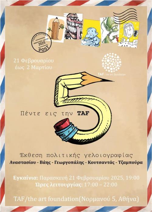 Αθήνα: Έκθεση πολιτικής γελοιογραφίας «5 εις την TAF» / από 21 Φεβρουαρίου μέχρι 2 Μαρτίου 2025