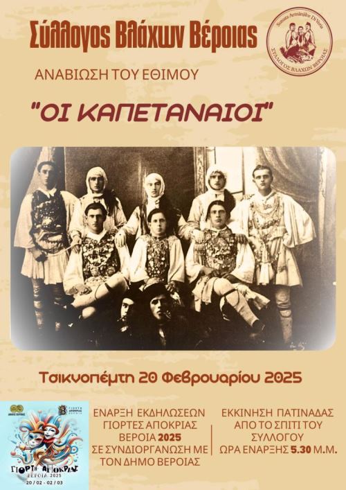 Ο Σύλλογος Βλάχων Βέροιας, όπως κάθε χρόνο, θα αναβιώσει και φέτος το