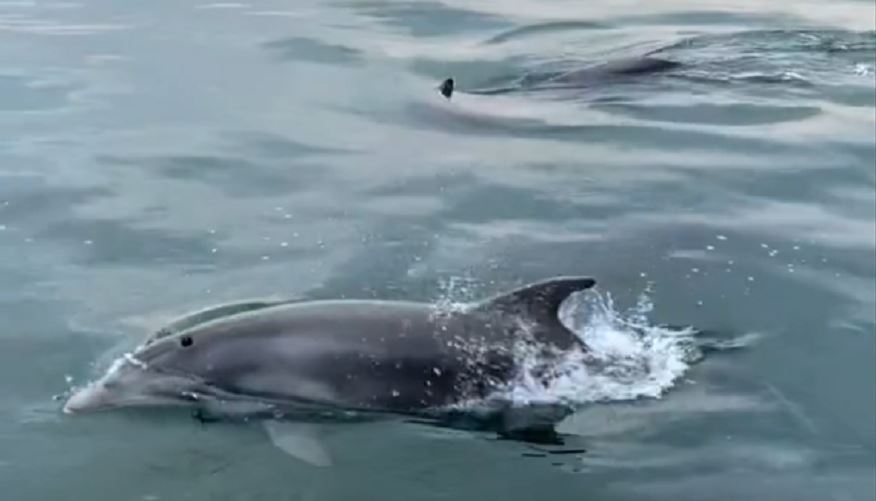 Δελφίνια έκαναν την εμφάνισή τους στον Θερμαϊκό κόλπο, με αποτέλεσμα πολλοί πρωινοί περιπατητές να κάνουν μια σύντομη στάση για να τα απαθανατίσουν.