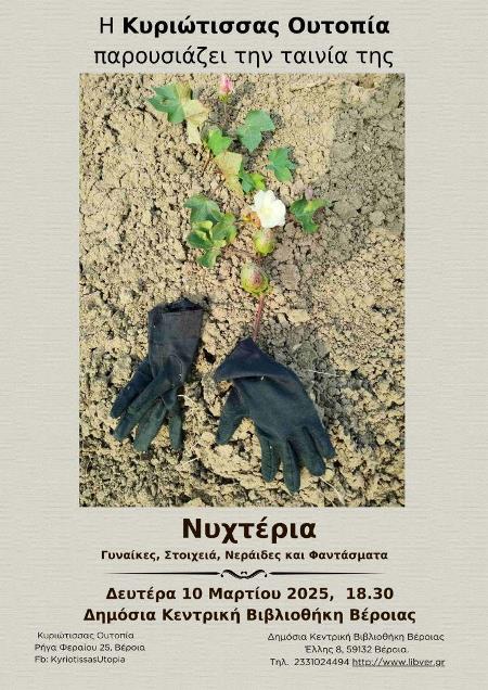 Προβολή ταινίας: Κίνηση Πολιτών Κυριώτισσας “Νυχτέρια” / Δημόσια Βιβλιοθήκη Βέροιας, Δευτέρα 10 Μαρτίου