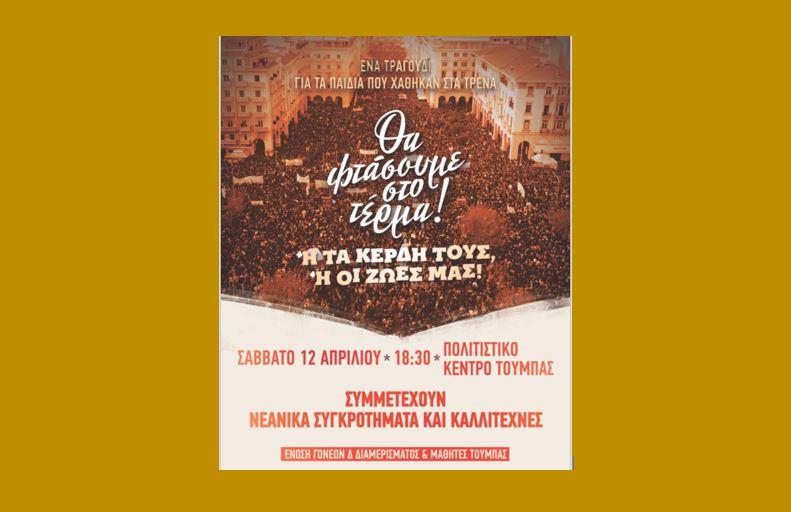 Καλούμε στις 12 Απριλίου όλους τους γονείς μαζί με τα παιδιά τους στην συναυλία – συγκέντρωση στο Πολιτιστικό Κέντρο Τούμπας στις 18:30.