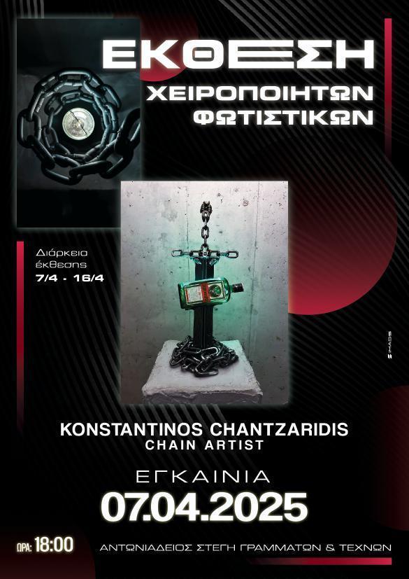 Έκθεση χειροποίητων φωτιστικών πραγματοποιεί ο καλλιτέχνης Κωνσταντίνος Χαντζαρίδης στο φουαγιέ της Αντωνιάδειας Στέγης Γραμμάτων και Τεχνών Βέροιας, από τις 7 έως τις 14 Απριλίου.