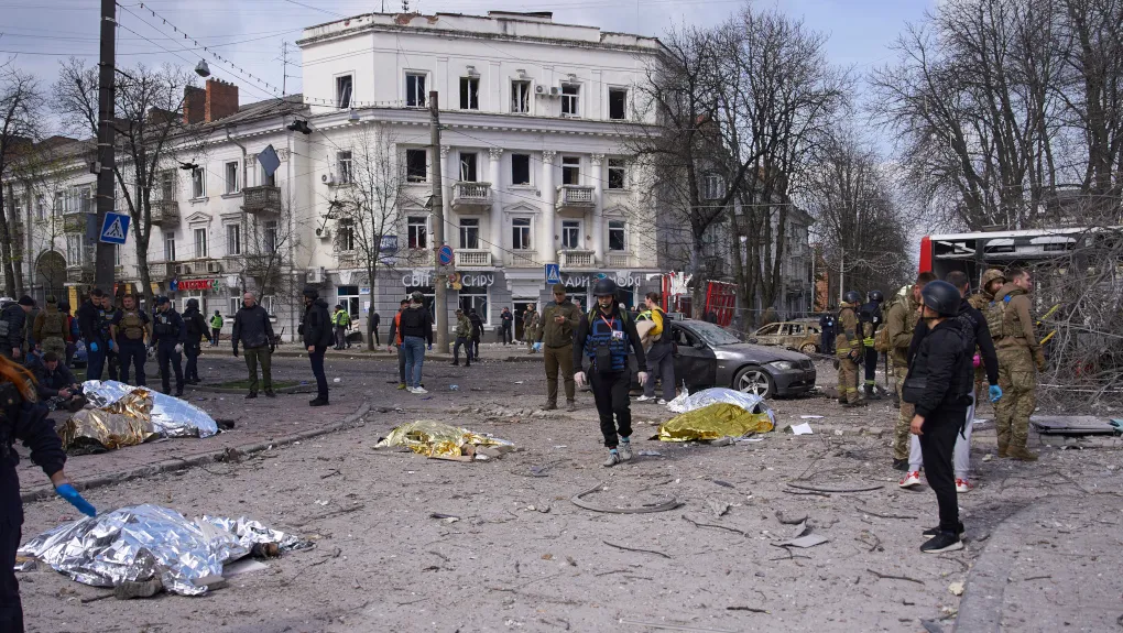 Σε κάθε περίπτωση, οι ουκρανικές Αρχές υποστηρίζουν ότι από το ρωσικό χτύπημα έχουν σκοτωθεί τουλάχιστον 34 άνθρωποι, ανάμεσά τους και δύο παιδιά, και τραυματίστηκαν περισσότεροι από 110. Ο πρόεδρος της Ουκρανίας Βολοντίμιρ Ζελένσκι καταδίκασε την επίθεση, κάνοντας λόγο για θηριωδία που «μόνο απολύτως παράφρονα αποβράσματα μπορούν να κάνουν», και συνοδεύοντας τη δήλωσή του με ένα ανατριχιαστικό βίντεο με πτώματα στο έδαφος, ένα κατεστραμμένο λεωφορείο και καμένα αυτοκίνητα στη μέση μιας κεντρικής λεωφόρου της πόλης.