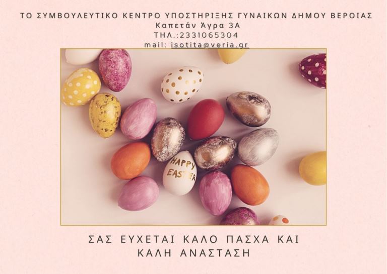 Πασχαλινές ευχές από το Συμβουλευτικό Κέντρο Υποστήριξης Γυναικών Δήμου Βέροιας