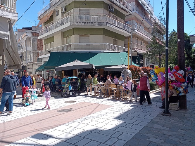 Έτσι, ένα βουερό μελίσσι πλημμύρισε τους δρόμους της Βέροιας με άλλους να κάθονται στα τραπεζάκια των καφέ κι άλλους να τρέχουν για να κάνουν τα τελευταία ψώνια. Όλοι; Όχι, ήταν λίγοι σε σχέση με τους περισσότερους, που ήταν απόντες, αθέατοι. Έβλεπες, όμως, στα πρόσωπα των παρόντων τόση χαρά, τέτοια λάμψη, που έλεγες να, η άλλη πλευρά αυτής της ανοιξιάτικης γιορτής του Πάσχα, (πέρα από το θρησκευτικό της μήνυμα), η αίσθηση της ελπίδας, όχι για τη νίκη πάνω στο θάνατο, αλλά για καλύτερες μέρες…