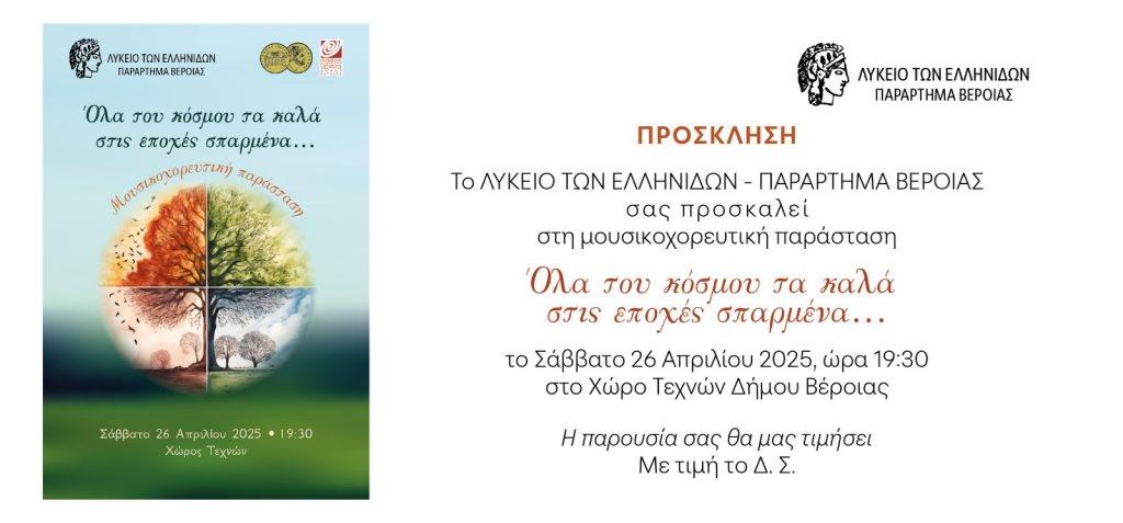 Λύκειο Ελληνίδων Βέροιας: Πρόσκληση στη μουσικοχορευτική παράσταση / Σάββατο 26 Απριλίου