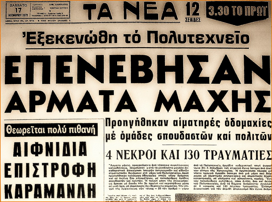 Η συνέντευξη του στρατιώτη οδηγού του τανκ, Α. Σκευοφύλακα, που εισέβαλε στο Πολυτεχνείο δόθηκε 30 χρόνια μετά στον δημοσιογράφο Κώστα Χατζίδη της εφημερίδας “Το Βήμα”. (faretra)