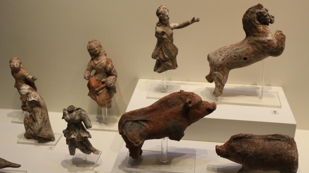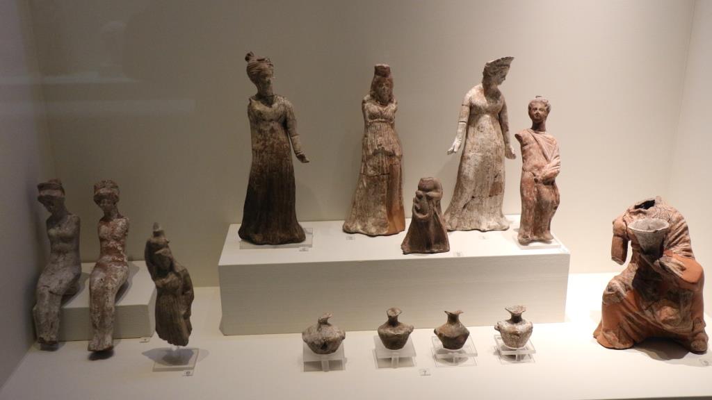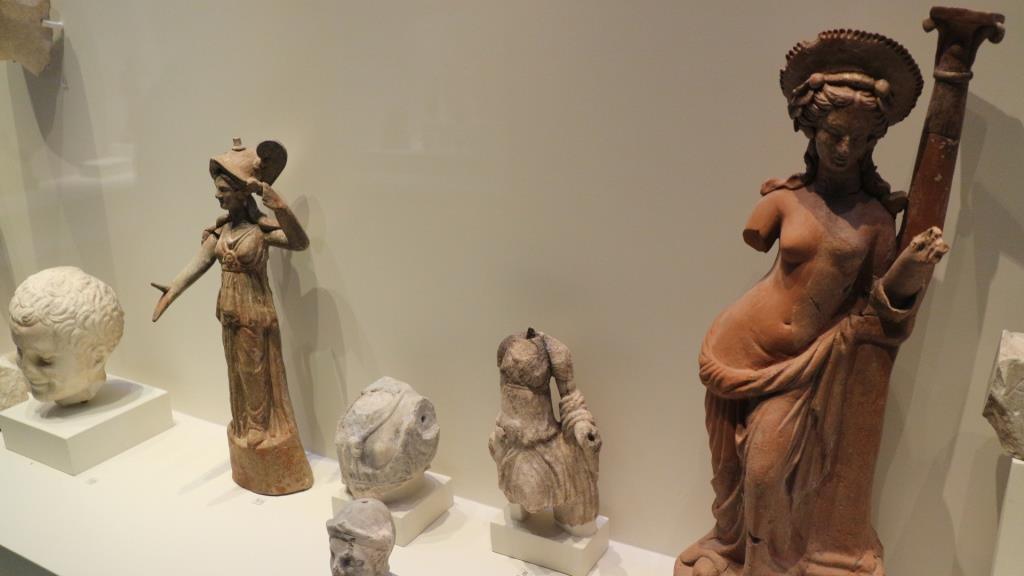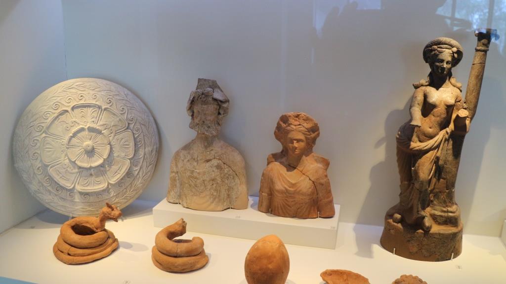 Η θρησκευτική πάλι ενατένιση των κατοίκων της αρχαίας πόλης καταγράφεται με πάμπολλα κυρίως πήλινα ειδώλια, όπου πρωταγωνιστεί η Αφροδίτη, εκπάγλου καλλονής, με ανάλαφρη την “Αφροδίτη αποσανδαλίζουσα”, δηλαδή την Αφροδίτη να βγάζει με μια χαριτωμένη κίνηση το σανδάλι της! Οι θεοί στα μέτρα των ανθρώπων και γι’ αυτό οικείοι στους θνητούς!