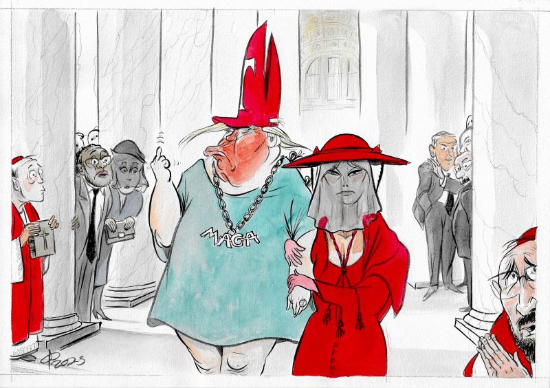 Σκίτσα για την παρουσία των υψηλών προσκεκλημένων στην κηδεία του «Πάπα των φτωχών»