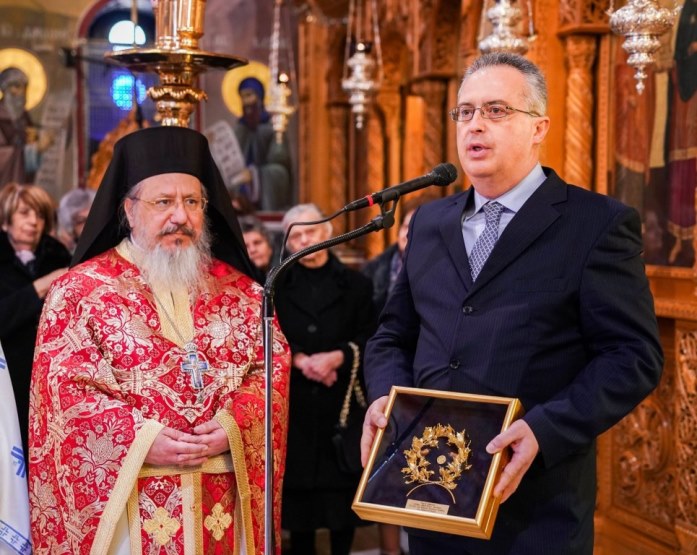 Στην θρησκευτική τελετή προεξήρχε ο Γενικός Αρχιερατικός Επίτροπος της Ιεράς Μητροπόλεως Βεροίας Ναούσης και Καμπανίας π. Δημήτριος Μπακλαγής, ο οποίος εκπροσωπώντας τον Σεβασμιώτατο Μητροπολίτη κ.κ. Παντελεήμονα, αναφέρθηκε με θερμά και γεμάτα συγκίνηση λόγια στην προσωπικότητα του εκλιπόντος και στο πολλαπλό έργο που με συνέπεια, σεμνότητα και αφοσίωση επιτέλεσε κατά την διάρκεια του βίου του.