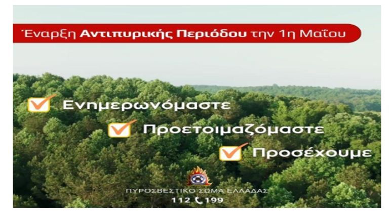 Στο πλαίσιο της διαρκούς ενημέρωσης και της ευαισθητοποίησης των πολιτών, η ΔΙ.Π.Υ.Ν. ΗΜΑΘΙΑΣ υπενθυμίζει ότι η αντιπυρική περίοδος στη χώρα μας ξεκινάει επίσημα αύριο, 1η Μαΐου και θα διαρκέσει έως την 31η Οκτωβρίου.