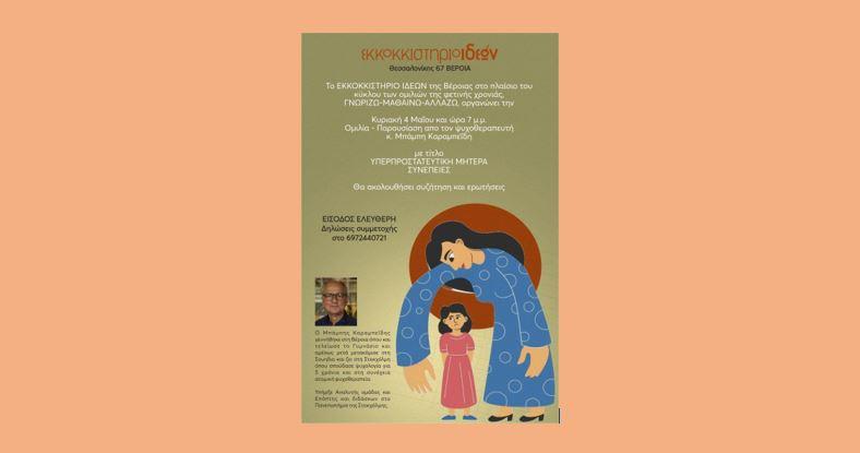 Εκκοκκιστήριο Ιδεών – Ομιλία: “Υπερπροστατευτική μητέρα και Υπερπροστατευτικοί γονείς”, από τον ψυχοθεραπευτή Μπάμπη Καραμπεΐδη / Κυριακή 4 Μαΐου