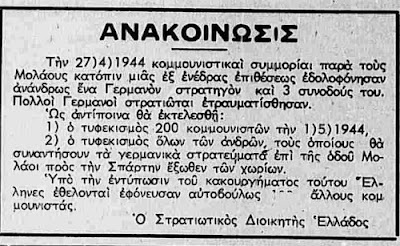 Η Ιστορία της περιόδου της φριχτής Γερμανικής Κατοχής, είναι γεμάτη με ανείπωτες τραγωδίες, με κτηνωδίες καταβαράθρωσης των ανθρώπινων αξιών, αλλά και με ανεπανάληπτες σελίδες απίστευτου ηρωισμού, πατριωτικής έξαρσης και ψυχικού και αγωνιστικού μεγαλείου. Από ανθρώπους άγνωστους μέχρι τότε που έδειξαν με τη θυσία τους τι θα πει Ζωή, τι θα πει να δίνει ο κάθε άνθρωπος το δικό του παρών όταν το καλεί η υπόθεση της Λευτεριάς και της Εθνικής Ανεξαρτησίας.