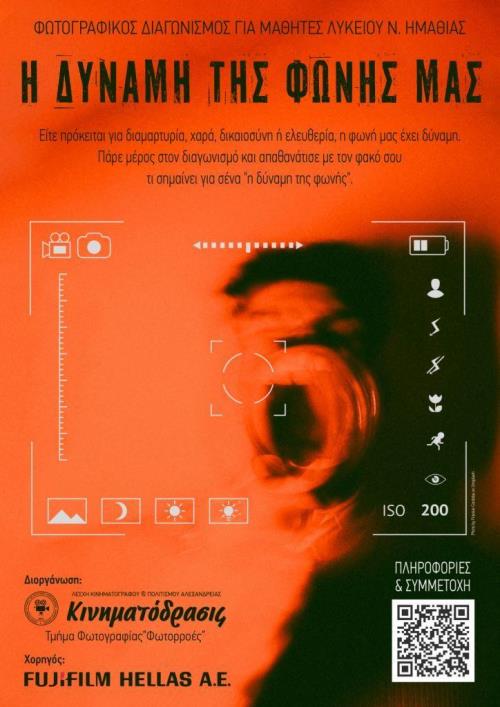 Ο διαγωνισμός φωτογραφίας απευθύνεται σε μαθητές λυκείου από τη σχολή της Ημαθίας και έχει ως στόχο να αναδείξει μέσα από το φωτογραφικό φακό την οπτική των μαθητών στο θέμα καθώς και να ενθαρρύνει τους νέους να ασχοληθούν με την τέχνη της φωτογραφίας. Οι μαθητές καλούνται να αποτυπώσουν φωτογραφικά το πώς η «φωνή» τους – κυριολεκτικά ή μεταφορικά – μπορεί να επηρεάσει τον κόσμο γύρω τους, να εμπνεύσει, να διεκδικήσει, να ενώσει ή να εκφράσει συναισθήματα.