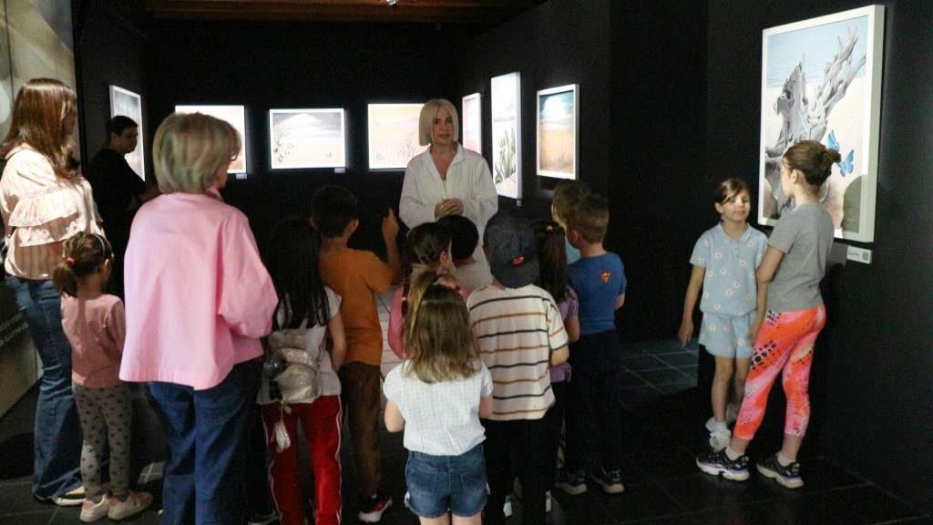 Ενώ οι μικροί ανέβηκαν στον πρώτο όροφο με ξεναγό την Μαρία Πολατίδου, οι γονείς χάρηκαν την έκθεση της Σουζάνας Γκόγκου, που φιλοξενείται στο ισόγειο, μια έκθεση με πολύ χρώμα, που ήδη στα εγκαίνιά της τον περασμένο Φεβρουάριο με τίτλο “Υφές χρωμάτων” είχε εντυπωσιάσει τους επισκέπτες, όπως φυσικά και τους σημερινούς επισκέπτες γονείς.