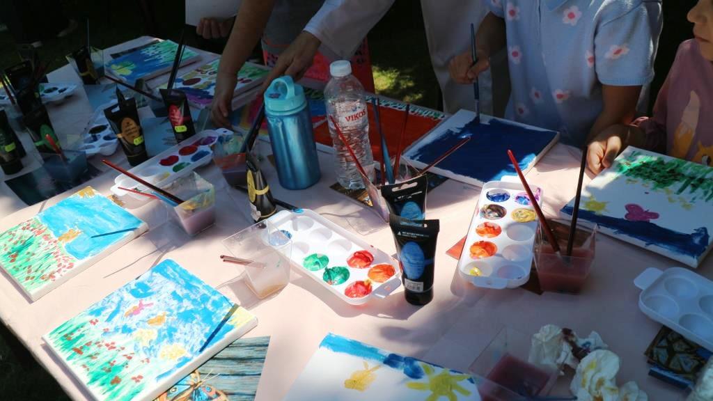 Η συνάντηση όμως των μικρών παιδιών με το Μουσείο δεν καλύφθηκε μόνο από τις ξεναγήσεις. Απέκτησε ακόμη μεγαλύτερο ενδιαφέρον για την ηλικία τους, όταν στον κήπο απλώθηκαν σύνεργα της ζωγραφικής, για να εκφραστεί το καθένα ζωγραφίζοντας τον κόσμο του.