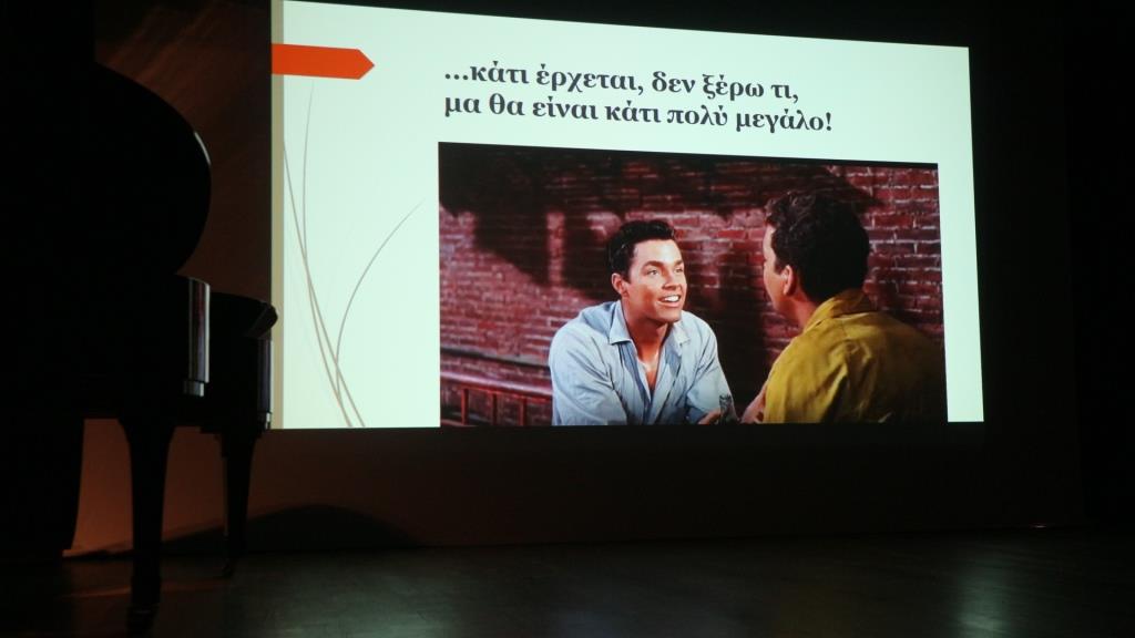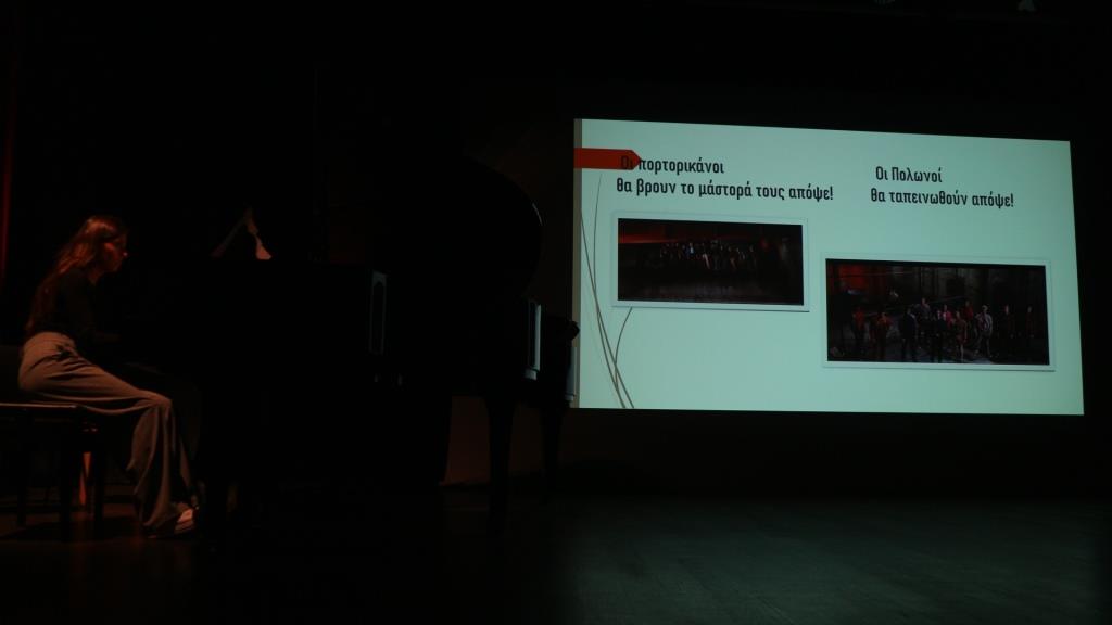 *Σημείωση: Η ιστορία έχει παραλλαχθεί σε μικρό βαθμό σε σχέση με το σενάριο της ταινίας West Side Story (1961) για να προσαρμοστεί τόσο στον αριθμό και τις δυνατότητες των συμμετεχόντων, όσο και στον σκοπό της εκδήλωσης. Από την ίδια προέρχονται όλες οι εικόνες που προβάλλονται.