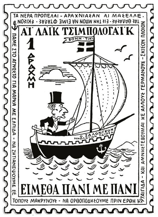 Ο Πειναλέων, η Ανεργίτσα και η Μαμά Ελλάδα, ήρωες του γελοιογράφου Μποστ που βρίσκονται στο μουσείο Μπενάκη.
