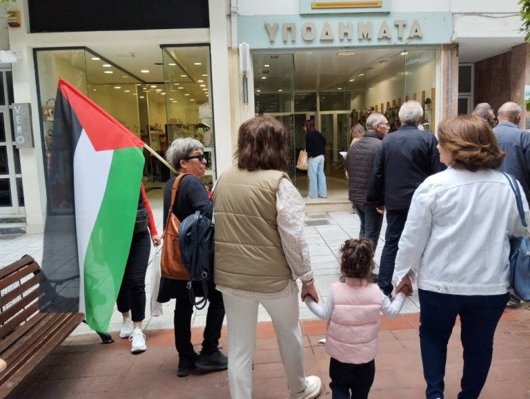 Εκφράστηκε η αλληλεγγύη προς τον ηρωικό λαό της Παλαιστίνης , τη στιγμή που το κράτος – δολοφόνος του Ισραήλ , έχοντας τις πλάτες των ΗΠΑ και της ΕΕ, κλιμακώνει τη γενοκτονία στη Λωρίδα της Γάζας , σφαγιάζοντας αμάχους και γυναικόπαιδα , ισοπεδώνοντας νοσοκομεία και ολόκληρες συνοικίες μετατρέποντας την « ανθρωπιστική βοήθεια» σε όπλο για την εκδίωξη του Παλαιστινιακού λαού από την πατρογονική του γη.