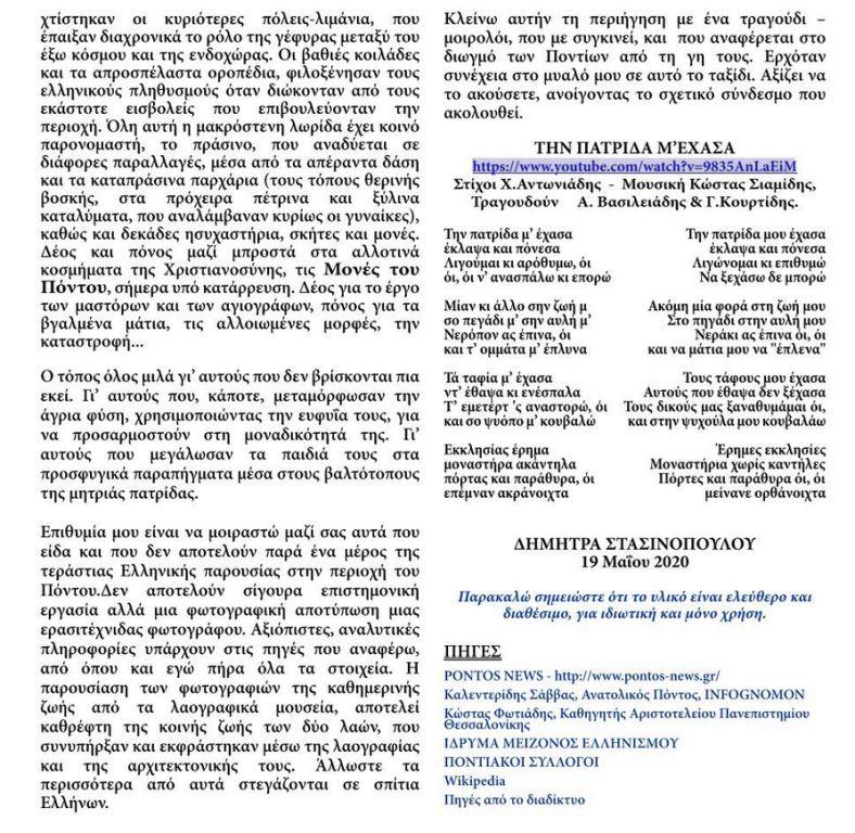 Ενδεικτικά δημοσιεύουμε μερικές φωτογραφίες. Στο σύνδεσμο που ακολουθεί μπορείτε να δείτε 500 φωτογραφίες από το οδοιπορικό της Δήμητρας Στασινοπούλου στον Πόντο και να διαβάσετε σχετικά κείμενα ΕΔΩ