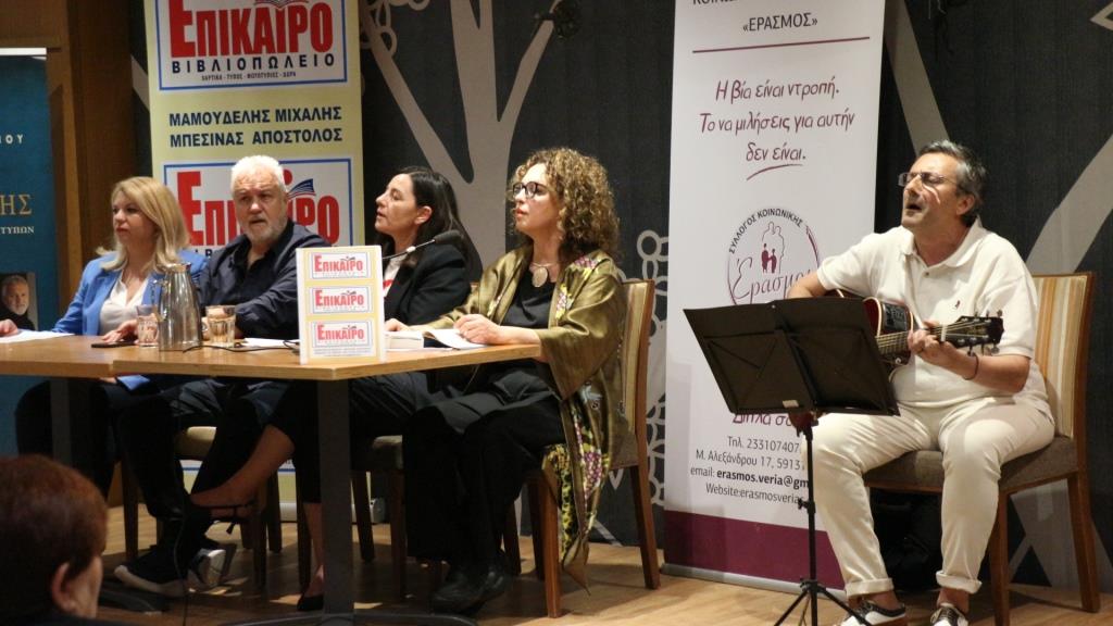 Για το βιβλίο μίλησαν η Συστημική Ψυχοθεραπεύτρια και Ψυχολόγος του «ΕΡΑΣΜΟΥ» Ευμορφία Μήτσιου, ενώ αποσπάσματα διάβασε η Φιλόλογος και Γενική Διευθύντρια της ΚΕΠΑ του Δήμου Βέροιας Κατερίνα Γρηγοριάδου.