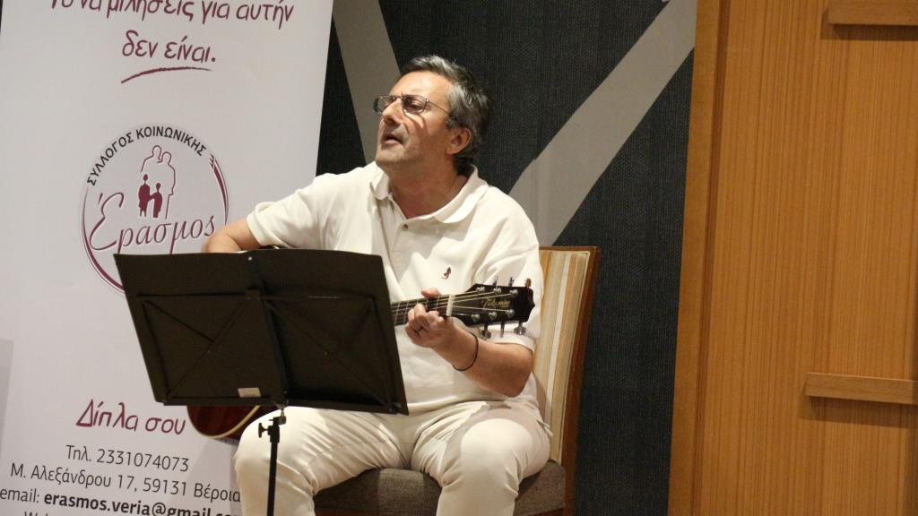 Η εκδήλωση φορτίστηκε συναισθηματικά με δύο τραγούδια που απέδωσε με την κιθάρα του ο Κωστής Χαλάτσης.
