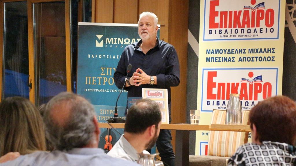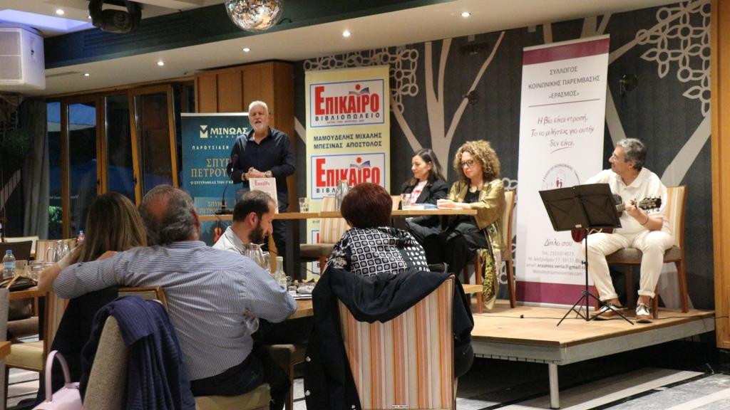 Στα πλαίσια των ποιοτικών εκδηλώσεων ήταν και η επιλογή της παρουσίασης του βιβλίου του Σπύρου Πετρουλάκη, τον οποίο και ευχαρίστησε.