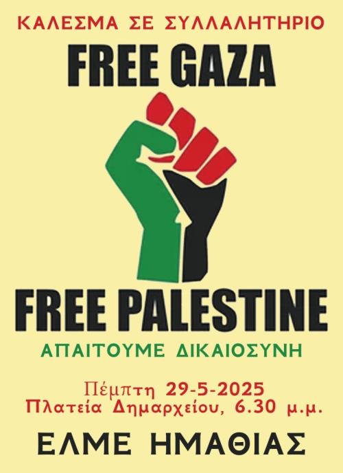 ΕΛΜΕ Ημαθίας: Κάλεσμα συμμετοχής στη συγκέντρωση για την Παλαιστίνη / Βέροια, Πέμπτη 29 Μαΐου – ώρα 7:00 μμ